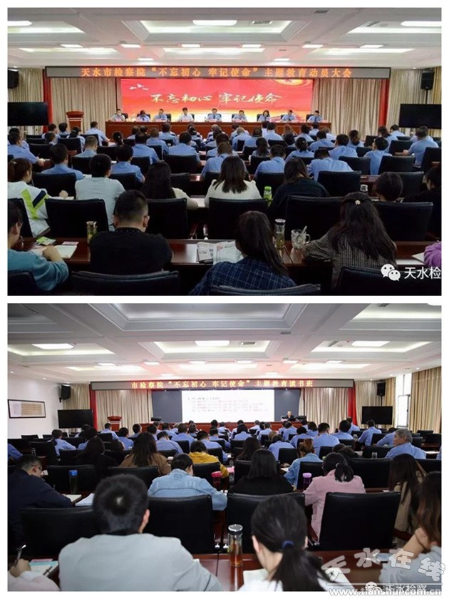 主题教育开展以来,天水市人民检察院党组高度重视,迅速行动,精心组织,把开展主题教育作为当前一项重大政治任务来抓,深入学习贯彻党中央、省委和市委“不忘初心、牢记使命”主题教育相关会议精神,先后制定了《中共天水市人民检察院党组关于开展“不忘初心、牢记使命”主题教育的实施方案》,举办了“不忘初心、牢记使命”主题教育读书班,从党组中心组学习、交流研讨、支部学习等方面制定了15项具体的学习计划,多措施抓好主题教育活动,各项学习活动紧密开展,在全院迅速掀起了学习热潮。