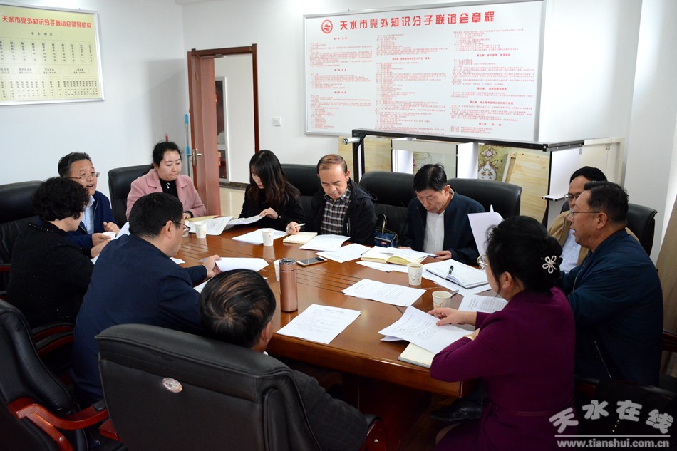 10月14日,天水市党外知识分子联谊会召开会长办公会议。市党外知识分子联谊会会长、市公共资源交易中心主任杨铁森主持会议,市党外知识分子联谊会副会长、秘书长和副秘书长参加。