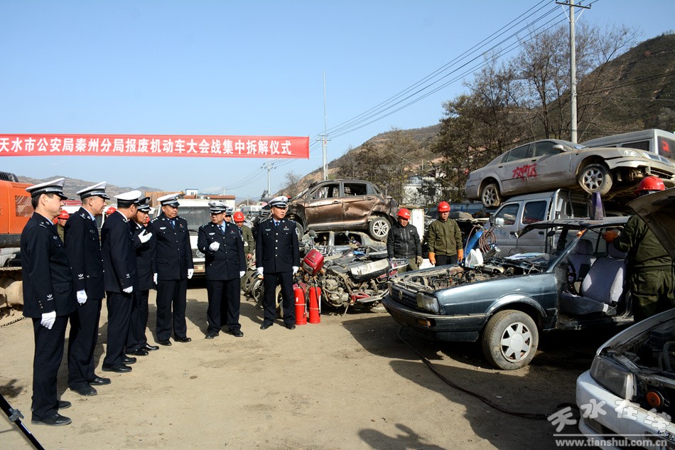 为彻底解决全市报废机动车存量大、安全隐患突出的问题,确保全市交通安全形势持续稳定。11月13日,天水市公安局在秦州区一机动车辆报废厂内举行全市公安机关集中整治报废机动车统一销毁活动,对查扣的报废机动车依法进行现场拆解。