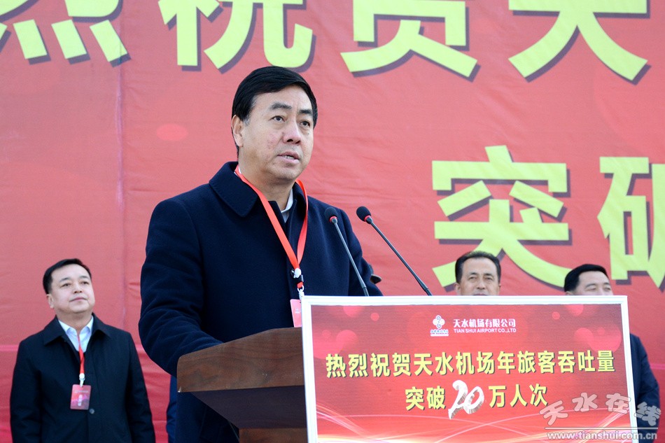 逯克宗代表市委、市政府向西部机场集团、天水机场公司表示热烈祝贺,希望天水机场再接再厉,按照市委、市政府决策部署,不断提升机场运营管理水平,以一流的服务质量、一流的工作效率,在推动天水民航事业发展过程中凝聚更强力量、贡献更多智慧、取得更大成绩。