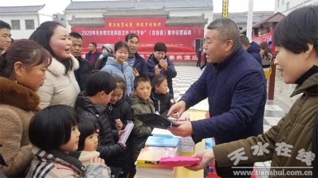 为深入学习宣传贯彻党的十九届四中全会精神,充分发挥文化科技卫生“三下乡”活动的品牌效应和示范作用,1月10日,天水市文化科技卫生“三下乡”集中示范活动在甘谷县六峰镇集中开展。天水市司法局以“认真学习贯彻党的十九届四中全会精神 深入开展文化科技卫生‘三下乡’活动”为主题,积极组织开展了“法律进乡村”活动,用群众喜闻乐见的形式将“法律大餐”送到农民家门口,帮助和引导群众尊法学法守法用法,为春节期间社会和谐稳定营造良好的法治环境。
