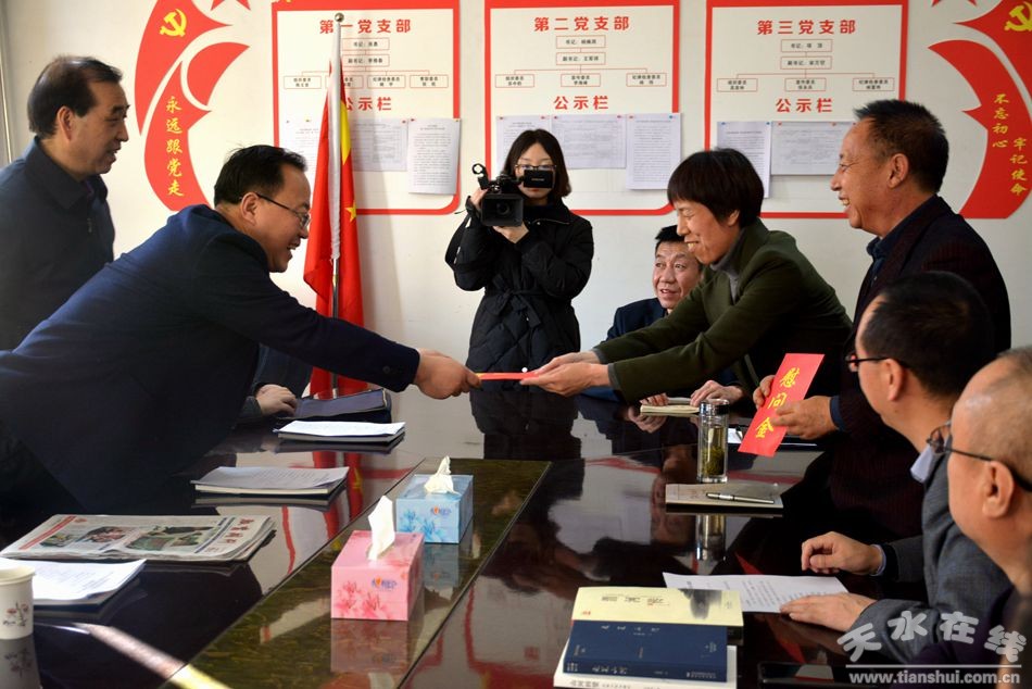 1月20日,天水市委常委、组织部部长贾义翔带领市委组织部、市委宣传部有关负责人到天水日报社,看望慰问天水日报社高级编辑王若冰、赵晓霞,向他们送去了市委和市政府的关心关怀,并通过他们向全市文化工作者致以亲切的问候和新春的祝福。