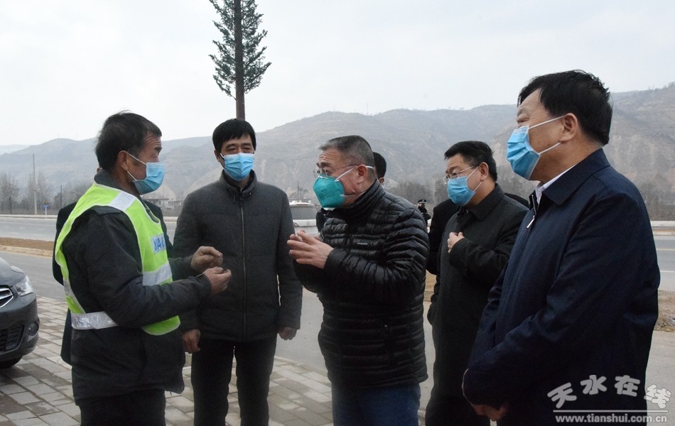 1月27日,天水市委书记王锐带领市委、市政府分管联系领导和卫生健康、教育等部门负责人,深入秦州区对新型冠状病毒感染肺炎疫情防控工作进行了调研督查。王锐强调,要深入学习贯彻习近平总书记重要指示精神,进一步把思想和行动统一到党中央、国务院和省、市关于新型冠状病毒感染肺炎疫情防控的部署要求上来,深刻认识疫情防控的严峻形势,坚持底线思维,切实提高警惕,压紧靠实责任,严阵以待,严防死守,严而又严、实而又实、细而又细地抓好各项防控措施的落实,确保打赢疫情防控这场硬仗。