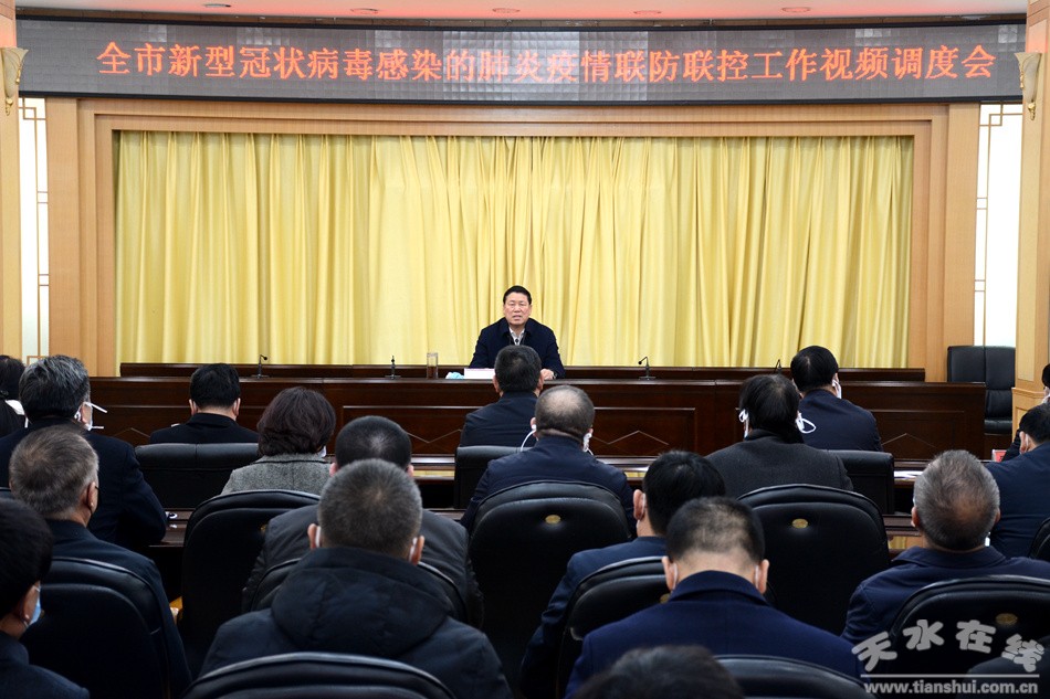 1月28日,天水市政府召开全市新型冠状病毒感染的肺炎疫情联防联控工作视频调度会,对我市疫情防控工作进行再安排再部署。市委副书记、市长王军强调,全市各级各部门要把疫情防控作为当前最重要的工作,高度重视,严而又严、实而又实、细而又细地抓好联防联控措施的落实,坚决遏制疫情在我市输入和蔓延。