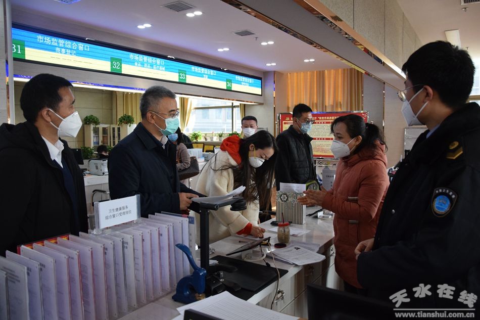 2月24日上午,天水市委常委、常务副市长赵四辈先后来到市公共资源交易中心、市政务大厅、秦州区政务大厅,现场察看人员到岗、业务办理和联合办公“一站式”服务等工作开展情况。