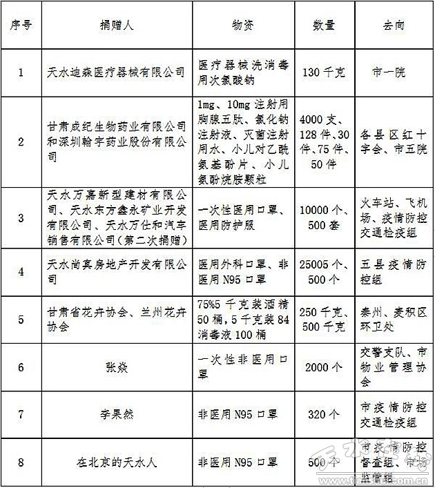 天水市红十字会接收抗击新冠肺炎疫情