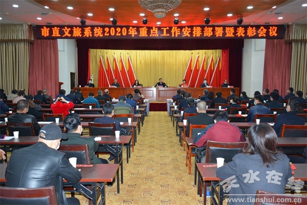 他明确提出2020年重点工作任务。一要抓好全行业新冠肺炎疫情受损补救工作,落实各项扶持政策,全力加快项目实施进度,逐步启动宣传推介活动。二要扭住重点项目建设不放松,重点加快白鹿仓、麦积山和伏羲庙大景区游客服务中心、麦积山国际露营地综合体、岷山文化宫改建项目建设,推进“三馆”“四园”项目实施,。三要全力抓好旅游产业扶贫,加快古坡草原、吕二沟文化旅游综合体建设,提升17个乡村旅游合作社发展水平,着力完成9个省级乡村旅游示范村创建任务。四要持续抓好公共服务工作,提升“四馆一站”免费开放服务质量,实施好行政村综合性文化服务中心设备采购配送及提档升级,完成全市53个文化馆分馆、56个图书馆分馆的建设任务,加大A级景区质量提升,指导天水宾馆创建国家四星级旅游饭店,完成30座旅游厕所建设任务。五要全面掀起文艺创作热潮,做好伏羲文化旅游节系列活动及重大节日专题文艺演出、展览活动,打磨提升《大秦文公》《一画开天》《天一生水》剧目质量,力争《天秀天水》《邓宝珊将军》《璇玑图》上演。六要扎实稳妥推进文化遗产工作,全面提升10个国有博物馆标准化建设,补充完善馆藏300件(套)三级文物藏品档案,做好第五批省级非遗项目和代表性传承人推荐申报工作,高质量完成“甘肃省非遗数据库”天水版块建设任务。七要下大力气推进市场监管工作,加强文化市场综合执法队伍建设,加大扫黑除恶工作力度,推动文旅市场“扫黄打非”和平安文化市场创建,加强对全市文化娱乐场所及旅游接待服务单位专项检查,确保全市文化旅游市场健康有序发展。切实抓好市文化旅游协会各项工作。八要持之以恒抓好广播电视工作,加快秦安、张家川县应急广播项目建设进度,严格落实安全播出“属地管理”原则,加大全市卫星地面接收设施和境外网络接收设备的专项整治工作。九要全面提升天水旅游新形象,围绕“心灵四季·畅游天水”主题,利用网络、电视、报刊等媒体,策划并开展大型宣传推介活动。策划办好公祭伏羲大典暨伏羲文化旅游节,举办“山海经与世界多元文化(天水)论坛”,办好天水市2020旅游形象大使选拔赛,创排动画电影《山海经之伏羲大帝》,加大实施文艺精品“走出去”力度。十要继续抓牢政治建设,充分发挥党组织作用,严格落实“三会一课”、主题党日等制度,持续巩固“不忘初心、牢记使命”主题教育成果,深入推进文旅系统党风廉政建设,严格落实意识形态工作责任制,依法依规强化阵地管理、促进文旅事业产业发展。