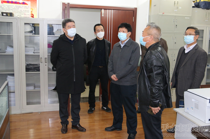 3月30日,省市场监管局党组成员、副局长孙乔玉一行对天水市市场监管局各直属单位疫情防控、推进复工复产、检验检测、综合行政执法等工作情况进行了调研指导。市市场监管局党组书记、局长王宏玮,党组成员、副局长贾文斌参加调研。