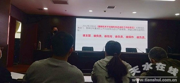 培训中,天水政安防火知识宣传中心教官结合政务大厅实际和近期发生的火灾案例,剖析了消防安全意识、消防安全知识和消防工具在消防安全工作中的重要作用,强调了火灾以防为主、防消结合的消防原则,指出侥幸心理、麻痹大意和毫无准备是火灾发生的根源,使参训人员进一步认识消防安全工作的重要性与必要性。同时,围绕日常生活中需要注意的安全用火、用电、用气事项,重点讲解了火灾扑救、预防火灾、处置紧急状况、逃生自救、正确使用消防器材等消防知识,提醒参会人员切实关注消防安全,认真履行职责,加强消防安全管理,严格落实各项消防安全制度,彻底排查和消除火灾隐患,确保消防安全。培训结束后,在保证窗口和群众正常办理业务的情况下,组织工作人员进行了应急疏散演练,整个演练过程紧张有序,所有参与人员步调协同、反应迅速,全部按要求安全疏散至指定地点。