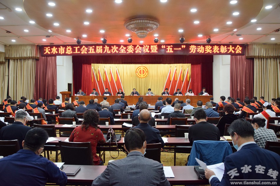 4月28日下午,天水市总工会五届九次全委会议暨“五一”劳动奖表彰大会在市迎宾馆召开,传达省总工会十二届六次全委会议精神,总结2019年工作,部署2020年工作任务,表彰荣获天水市五一劳动奖状、奖章、工人先锋号和五一巾帼奖的先进集体和先进个人。市委常委、组织部部长贾义翔,市政协副主席高媛瑾出席会议,市人大常委会副主任、市总工会主席王晓琴主持会议。