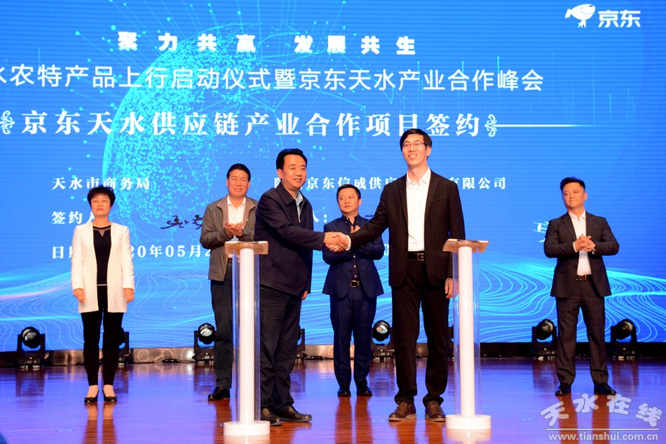 在当日举行的天水农特产品上行启动仪式暨京东天水产业合作峰会上,京东集团还与天水市就“供应链产业合作”、“创新业务合作”、“数科项目”等方面达成合作。
