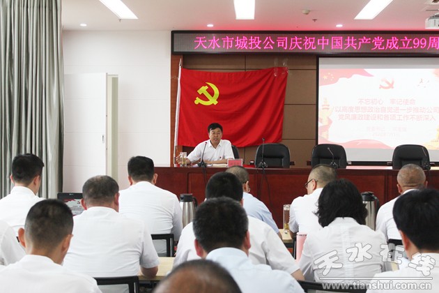 7月1日,在喜迎中国共产党成立99周年之际,天水市城投公司召开庆祝中国共产党成立99周年暨党委书记讲专题党课会议。公司领导班子成员,公司全体党员,机关全体员工共计140余人参加会议。