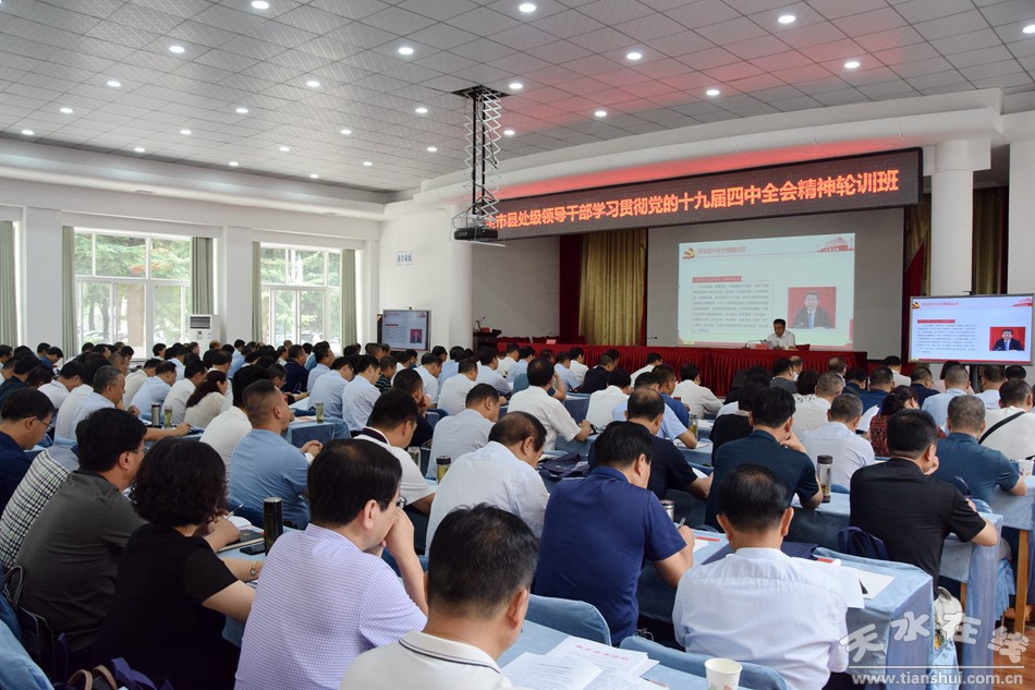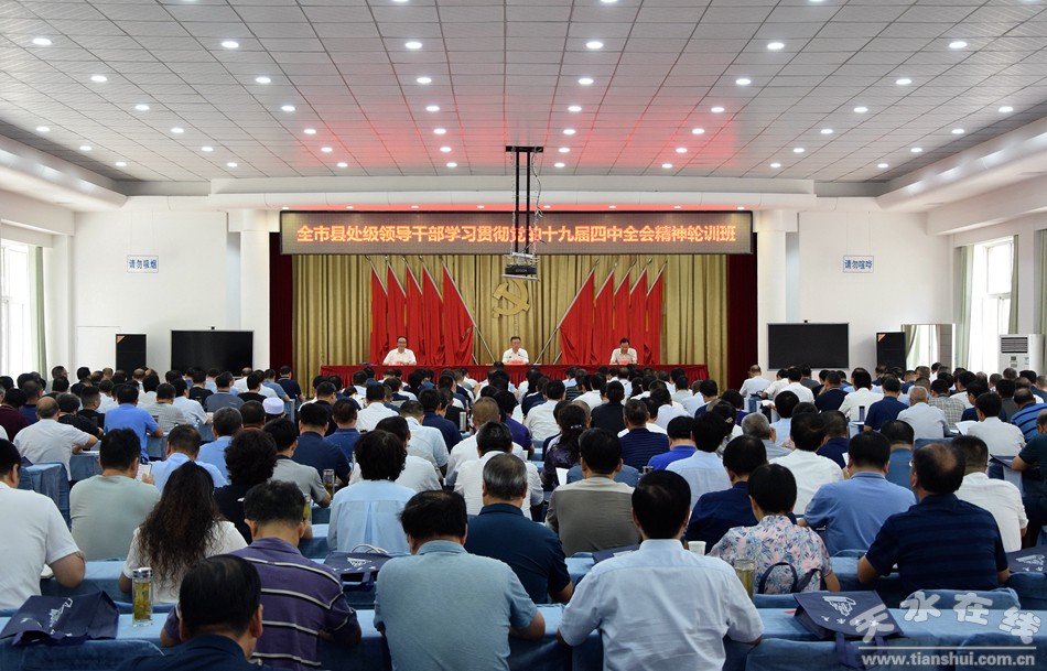 8月10日上午,全市县处级领导干部学习贯彻党的十九届四中全会精神轮训班在市委党校开班。市人大常委会党组书记、主任蒋晓强出席开班仪式,并作了题为《深入学习贯彻党的十九届四中全会精神 坚持和完善人民代表大会制度这一根本政治制度》的辅导报告。