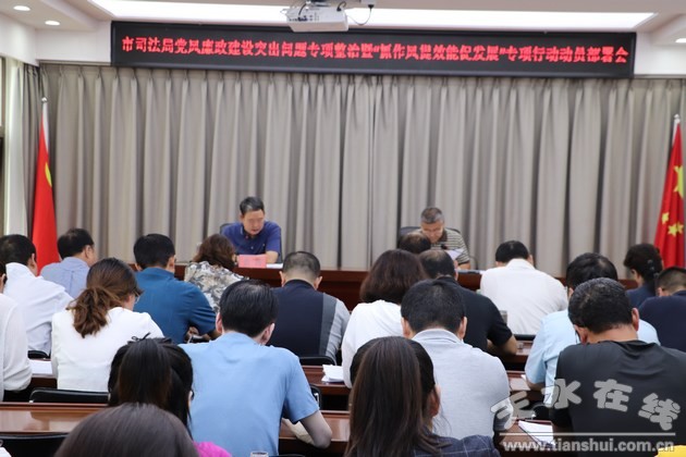 8月12日,天水市司法局召开全市司法行政系统党风廉政建设突出问题专项整治活动暨深入开展“抓作风提效能促发展”专项行动动员部署会,会议由局党组成员、副局长侯少军主持,局机关及所属单位全体干部职工参加了会议。