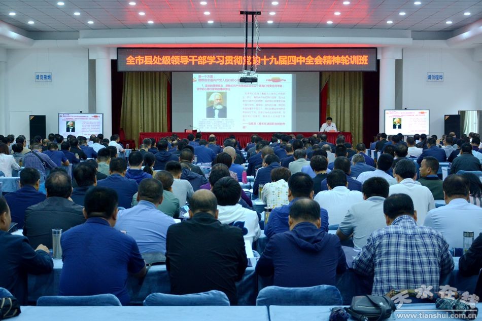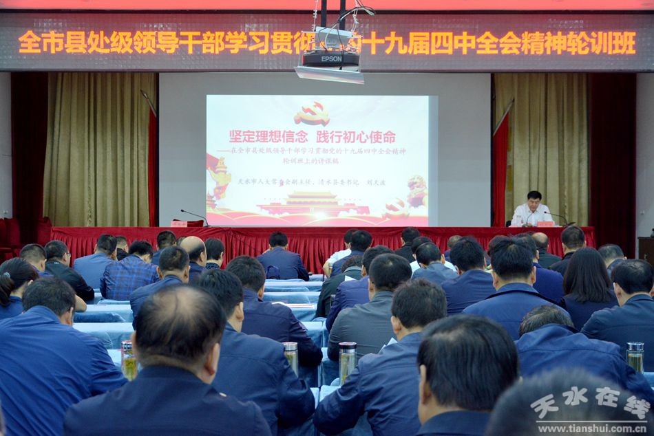 8月18日,市人大常委会副主任、清水县委书记刘天波为全市县处级领导干部学习贯彻党的十九届四中全会精神轮训班作了题为《坚定理想信念 践行初心使命》的辅导报告。