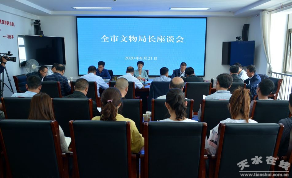 8月21日,天水市召开全市文物局长座谈会,学习贯彻习近平总书记对甘肃重要讲话和指示精神,贯彻落实全省文物工作会议精神,分析我市文物保护工作存在的问题和短板,研究部署下一步工作。