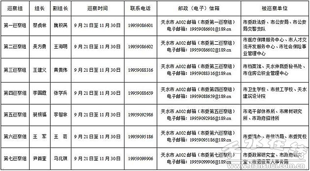 根据市委对巡察工作的统一部署,七届天水市委第八轮巡察工作已全面展开。截止9月23日,7个巡察组全部完成进驻。