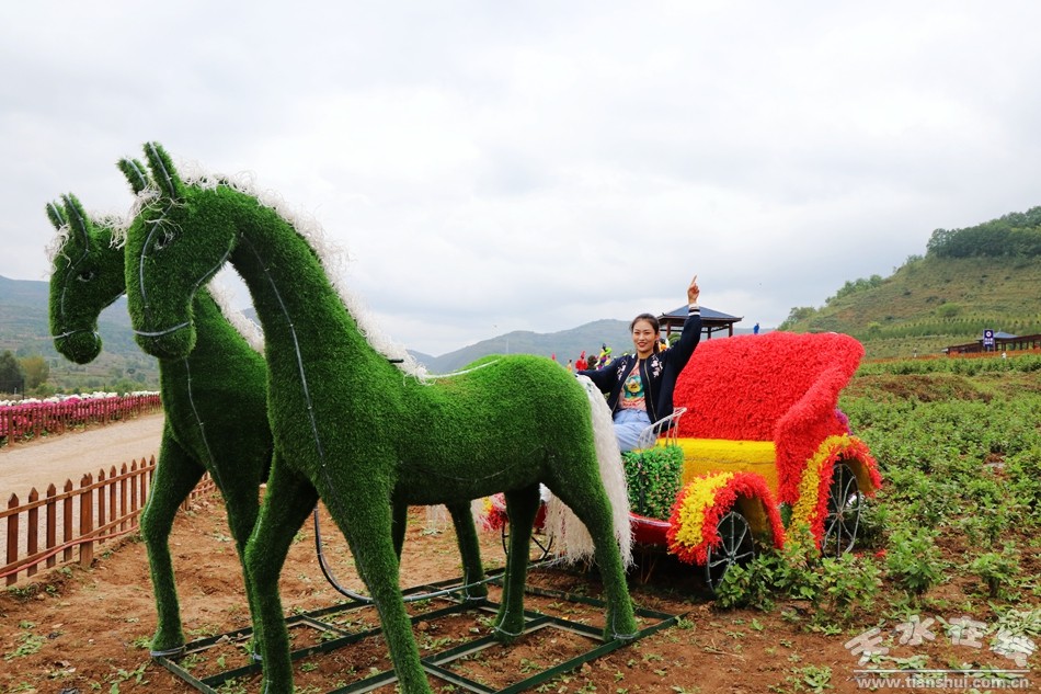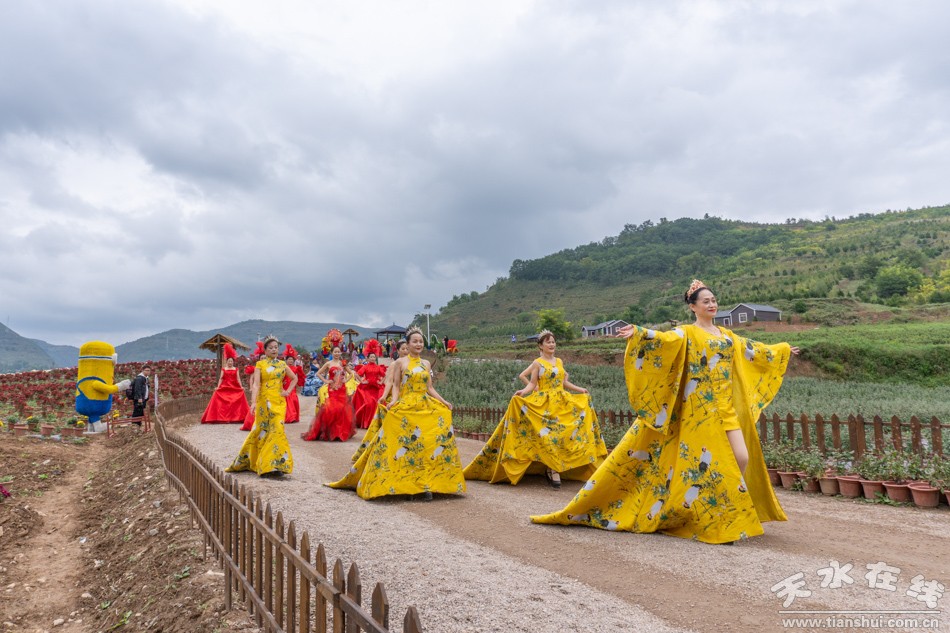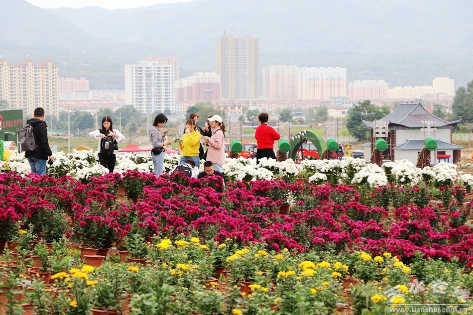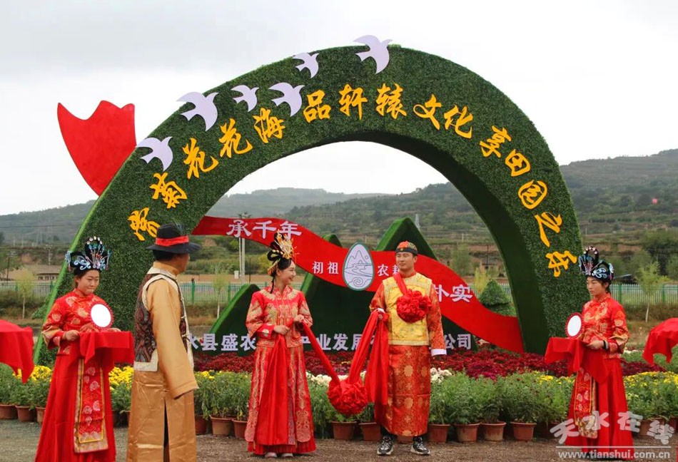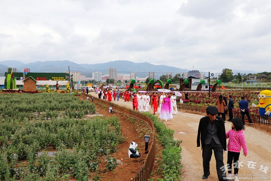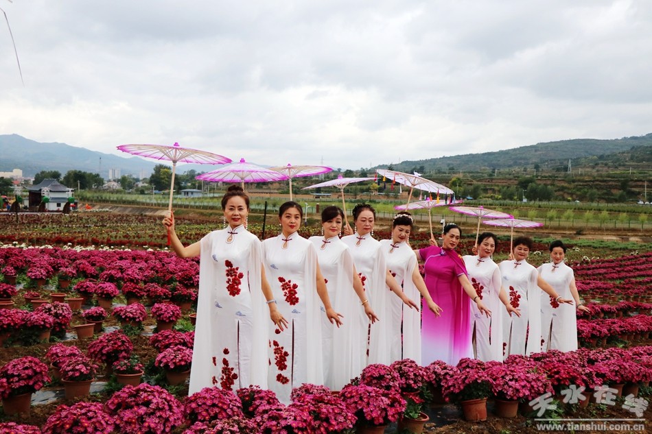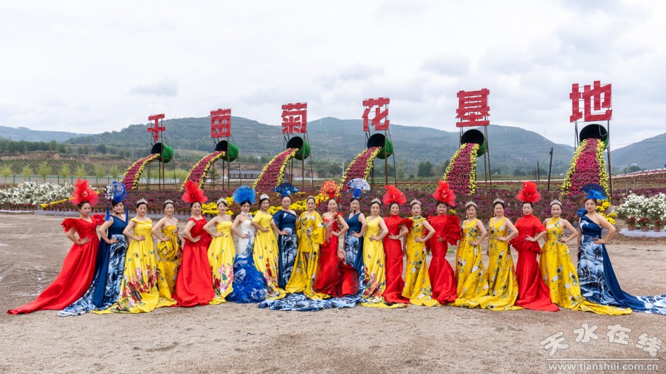 天水在线9月29日报道 在国庆黄金周即将到来之际,为了营造氛围,迎接大批游客的到来,连日来,位于清水县永清镇樊峡村、地处邽山生态园脚下、毗邻轩辕湖公园的清水千亩菊花观赏园,时装秀、中式婚礼表演和钓鱼比赛等多个活动接连上演,吸引了大批游客观赏。