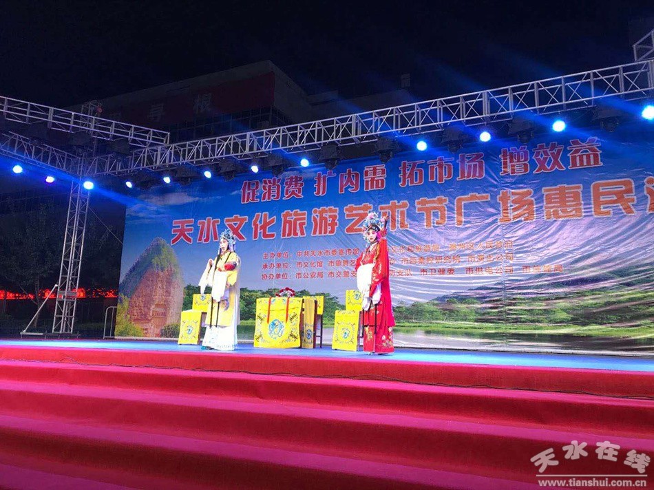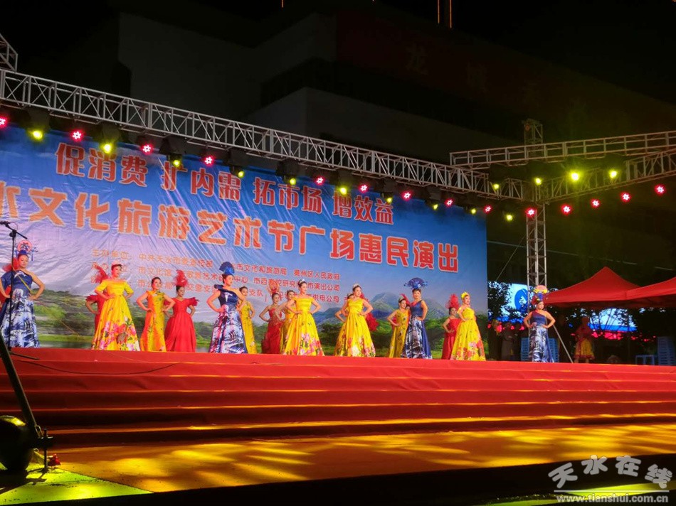 广场文化惠民演出是2020年天水文化旅游艺术节的重点活动之一。在过去的10天里,天水市文化和旅游局组织秦州区文旅、麦积区文旅局、市文化馆、市歌舞艺术研究中心、市西秦腔研究院等单位,分别在伏羲广场、龙城广场、马跑泉市政广场、翠湖公园演艺广场举办了27场广场惠民演出活动,在公安、交警、供电、消防、卫健、住建和综合执法等部门的大力支持和配合下,27场演出活动圆满结束,累计参与群众30余万人次 。