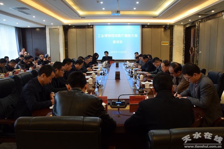10月23日,天水市工信局组织召开了由市工业国投公司和31家相关工业企业、市工业博物馆成就展陈方案设计团队上海风语筑公司专业团队参加的座谈会,就市工业博物馆成就厅展陈方案进行了座谈。