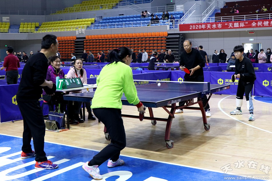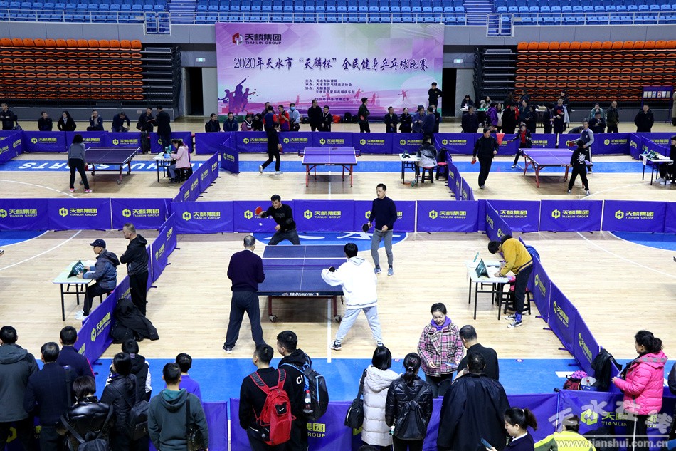 10月31日上午,由天水市体育局主办,甘肃天麟房地产开发集团协办的2020年天水市“天麟杯”全民健身乒乓球比赛在市体育中心隆重开幕。参赛运动员将在未来2天进行90多场次比赛,最终决出团体前八名。