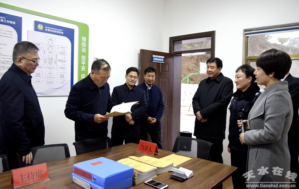 汇报会后,中央督查组查阅了我市贯彻落实《条例》台账资料,并深入市检察院、市公安局和清水县,通过召开座谈会、听取工作汇报、查阅台账资料、与相关方面负责同志及乡镇(街道)政法委员开展谈话等形式,实地督查了市县两级贯彻落实《条例》的具体情况,对各项工作进行了现场指导。