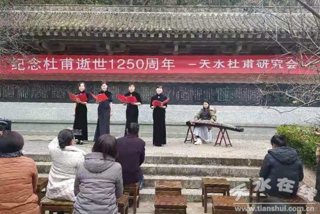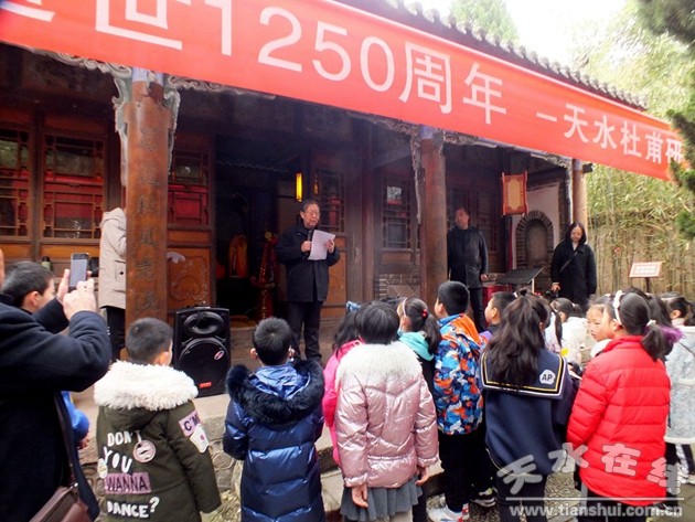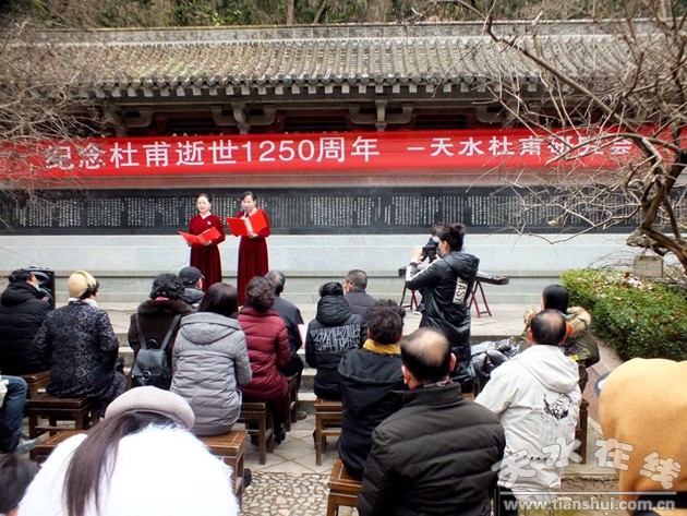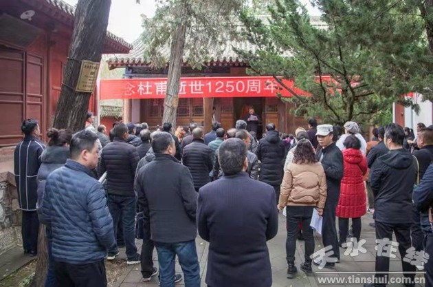 市人大原副主任邓炎喜、市编委主任仙松涛、市政协教科文卫委员会副主任宋桂文、市文旅局党组成员王国庆、市民间组织管理局局长李琳、市文联秘书长李陆英、作家学者毛晓春、天水明德书院院长杨天霖、天水书画研究院院长李笼等与天水杜甫研究会会员、杜诗爱好者及建二小学学生近百人参加了纪念活动。