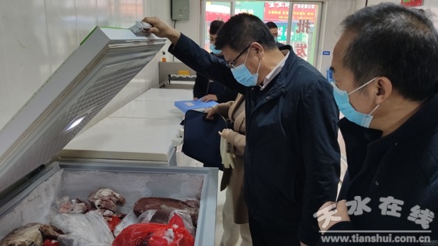 督查组通过查阅资料、召开座谈会、与基层监管人员、市场主体责任人详细交谈,深入食品生产经营一线明查暗访,对农贸市场和大型综合超市进口冷链食品、畜禽水产品,市场开办方落实主体责任、核酸检测制度、进货查验等情况以及“陇上食安”电子追溯平台使用等情况进行全面督查。共检查麦积区社棠农贸市场、秦安县商业步行街综合市场、清水县永清镇杨家林综合市场等6个农贸市场,秦州区嘉佰乐超市、甘谷县光红水产批发部、武山县祥瑞码头故事等49户食品经营单位,甘谷县千河源纯净水厂等3户食品生产单位。