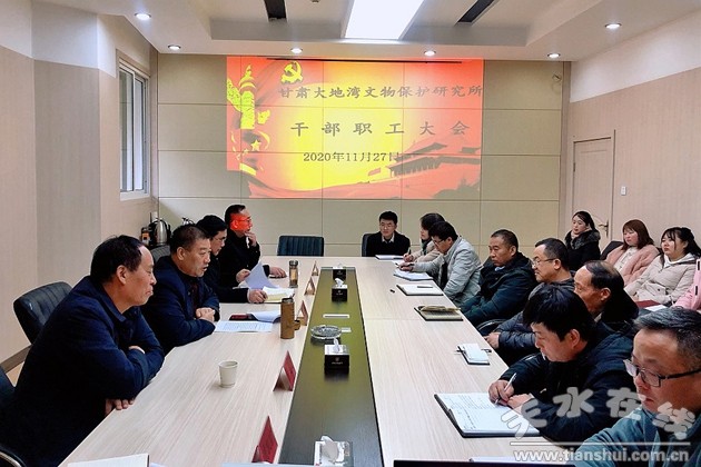 11月27日,甘肃大地湾文物保护研究所召开干部职工大会,宣布人事任免决定,根据市委市政府总体安排,赵志雄同志任甘肃大地湾文物保护研究所所长。市文化和旅游局党组书记、局长、二级巡视员李玉进同志到会,并就抓好新班子建设、做好下一步工作做了讲话。市文化和旅游局二级调研员魏国柱、局人事科负责同志及大地湾文保所全体干部职工参加会议。