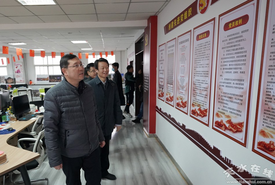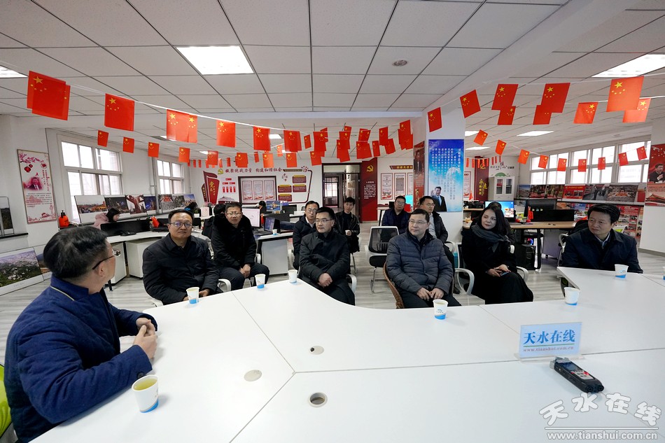12月4日,中共张掖市委常委、宣传部部长李润强带领张掖日报社党委书记、社长郭生玺,张掖市广播电视台党组书记、台长王逢杰,中共张掖市委宣传部办公室主任、四级调研员文勇,中共张掖市委宣传部新闻科科长韩润东,中共张掖市委宣传部宣传教育科科长宁英,临泽县委常委、宣传部部长牛伟全,高台县委宣传部常务副部长田玉龙,民乐县委宣传部副部长、国教办主任焦德宏,肃南县委宣传部副部长、国教办主任梁生红,莅临天水在线考察。天水市委副秘书长高丽陪同考察。