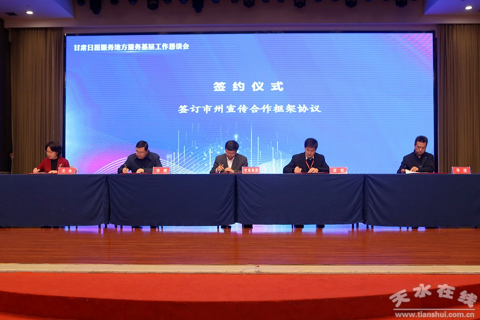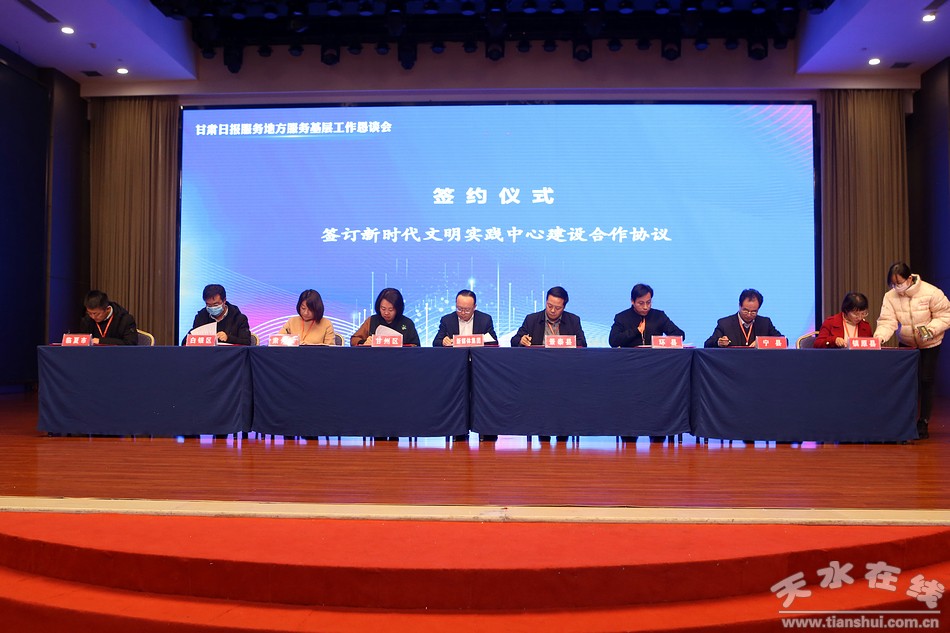 此次活动由甘肃日报社、甘肃日报报业集团公司主办,中共天水市委宣传部、甘肃新媒体集团、甘肃日报报业集团公司广告分公司、甘肃日报报业集团公司发行分公司承办,兰州农村商业银行股份有限公司、兰州客运中心协办。会上、甘肃日报社总编辑巩炜介绍了甘肃日报服务地方、服务基层情况及2021年重点报道选题策划,甘肃日报报业集团公司党委副书记、总经理昝琦介绍了甘肃日报报业产业发展和媒体融合情况;天水市、甘州区、宁县、舟曲县党委宣传部负责同志进行了交流发言;甘肃农民报、甘肃经济日报、甘肃法制报总编辑分别介绍了各报服务地方、服务基层及发展情况。