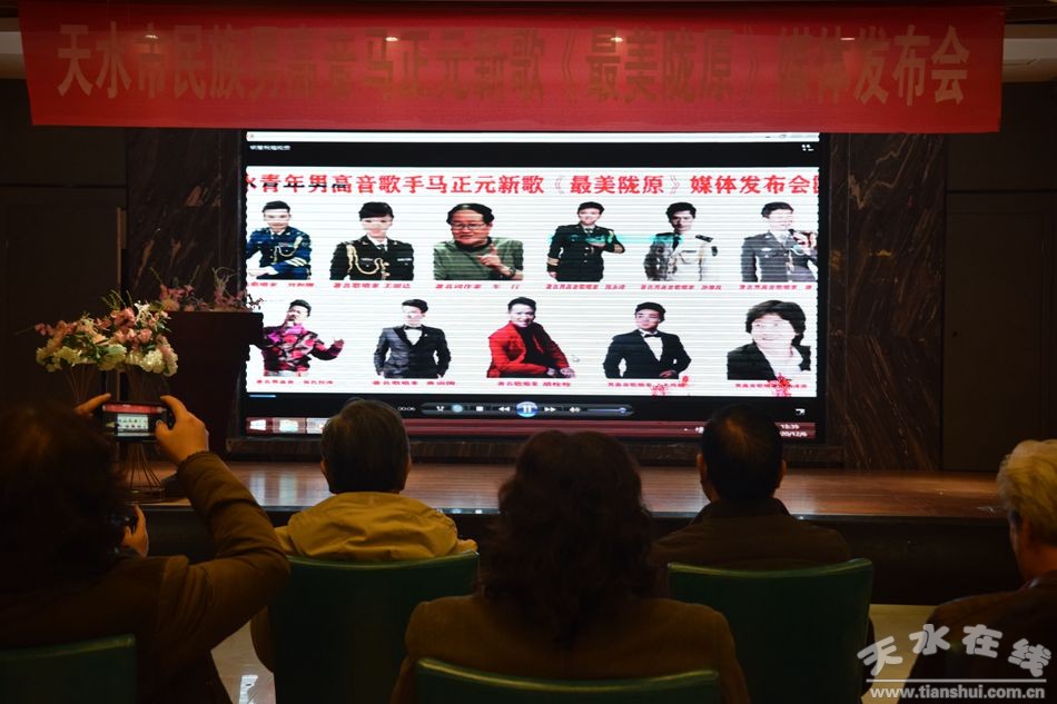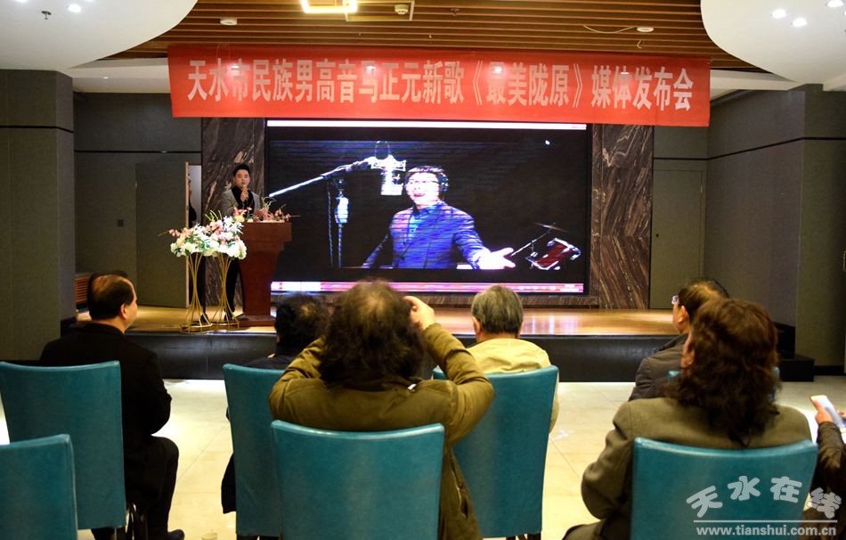 12月6日,由天水市音乐人高关中创作,天水市青年民族男高音歌手马正元演唱的聚焦脱贫攻坚伟大实践的新歌《最美陇原》新歌媒体发布会在天水举行。天水音乐界人士李祖武、姚德明、刘瑞明、张亚等以及我市部分媒体记者参加了新歌发布会。