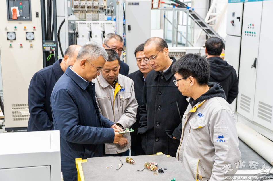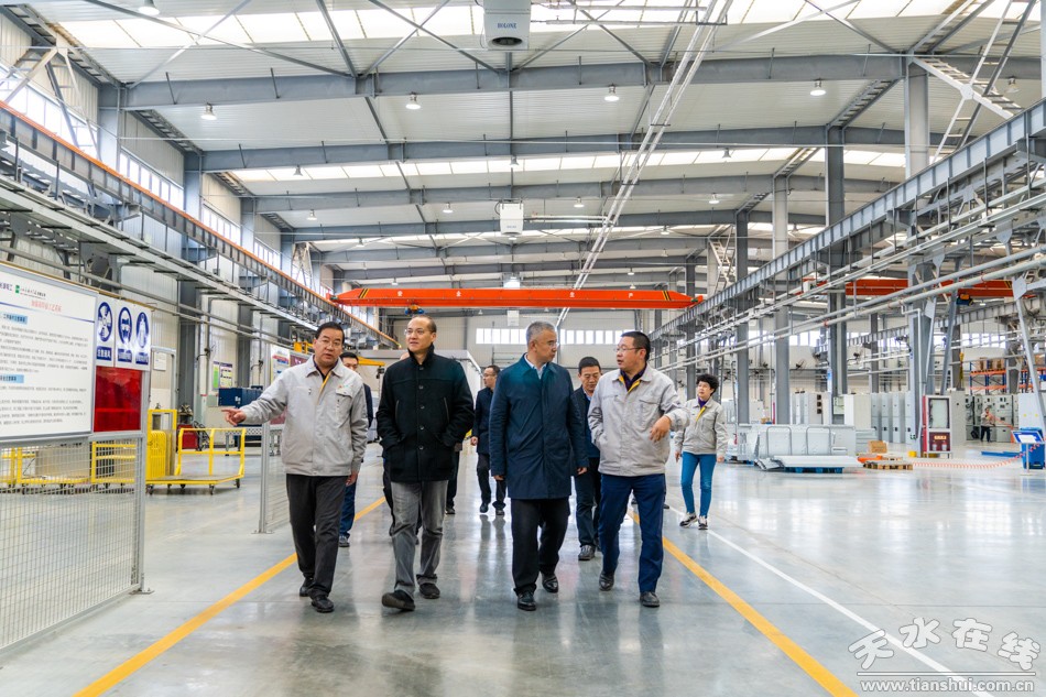 张世荣一行先后来到天水电气传动研究所集团有限公司、天水锻压机床(集团)有限公司、长城开关厂集团有限公司、甘肃电器科学研究院、华洋电子科技股份有限公司、天光半导体有限责任公司、二一三电器有限公司、华天电子集团股份有限公司等企业,实地察看了生产车间、技术中心,听取了汇报,详细了解了企业发展以及科技创新等情况。