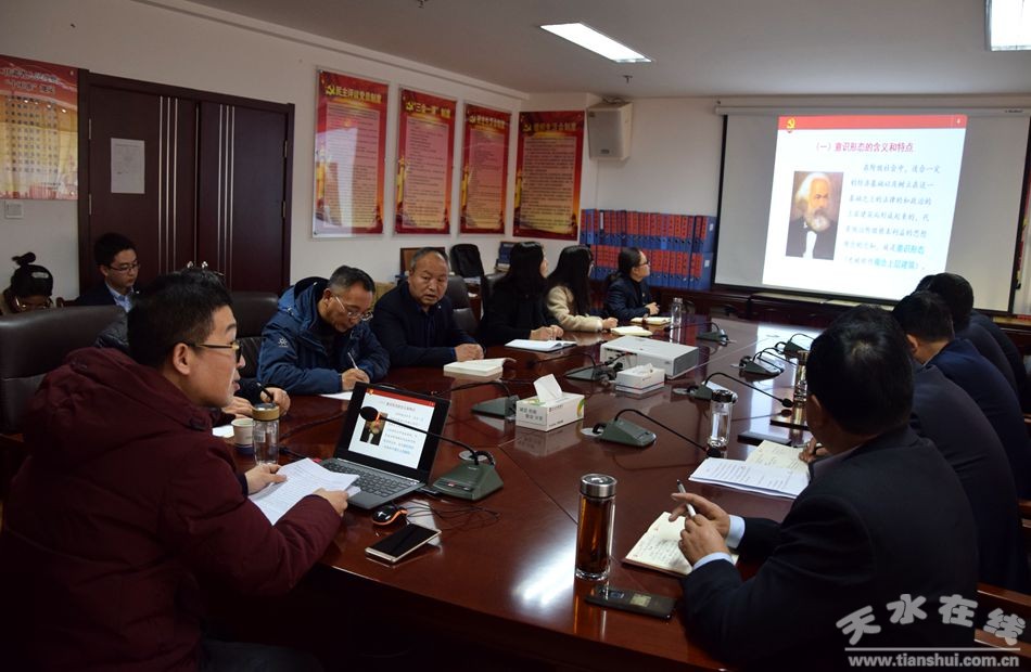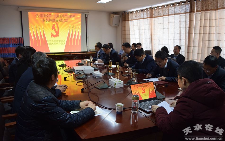 12月10日,天水市政府金融办和甘肃金控天水融资担保有限公司举行学习贯彻党的十九届五中全会精神报告会,邀请市委讲师团成员、市委党校党史与党建教研室副主任、讲师侯强强作专题宣讲报告。