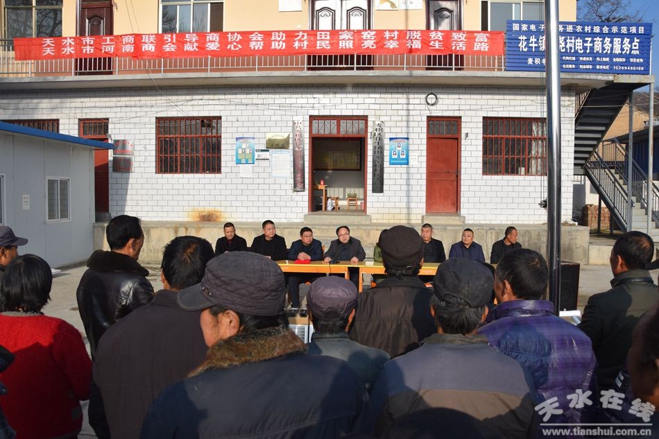 在捐赠仪式上 ,天水市工商联副主席蔡建春、天水市河南商会主席武平舟、爱心企业代表甘肃爱德信新能源设备有限公司总经理刘子俊等先后发言,田家窑村村党支部书记马康生向河南商会及爱心企业表达了感激之情 。花牛镇人大主席霍军还向天水市河南商会及爱心企业现场颁发了荣誉证书 。
