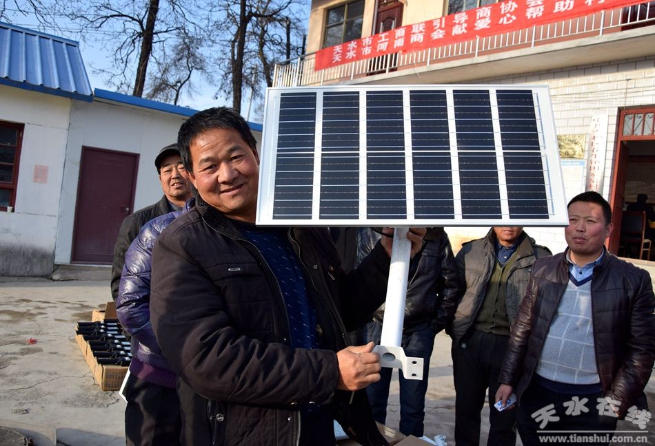 据了解 ,花牛镇田家窑村位于花牛镇南部 ,这里山大沟深 ,基础条件滞后,虽然去年经过各级政府和帮扶单位的大力扶持 ,该村已顺利实现总体脱贫摘帽,但由于受地理条件等各方面限制 ,乡村的发展依然面临很多困难 。尤其是该村夜晚缺乏照明设施,多年形成的夜间"行路难"问题 依然没有得到很好的解决 。得知田家窑村的具体困难后 ,天水市工商联积极协调 联系有关企业 ,天水市河南商会更是积极动员会员单位为田家窑村奉献爱心 。