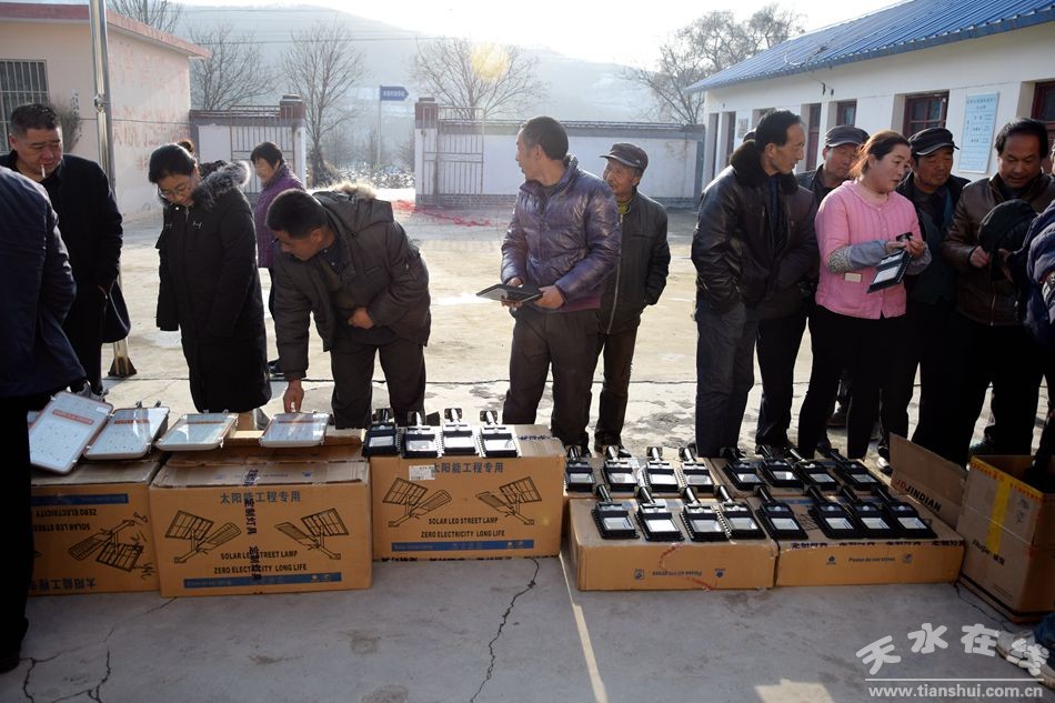 12月14日,冬雪初霁 ,冒着风雪严寒和道路泥泞,在天水市工商联副主席蔡建春和天水市河南商会会长武平舟、麦积区工商联主席张建凤 的率领下,我市一批爱心人士深入到麦积区花镇田家窑村,为该村送去了由天水市河南商会和甘肃爱德信新能源设备有限公司捐赠的58套太阳能路灯 ,为乡亲们送去了企业的关怀和爱心 ,受到了乡亲们的热烈欢迎 。