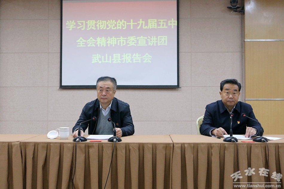 12月15日,天水市人大常委会党组书记、主任蒋晓强在武山县宣讲党的十九届五中全会精神。他强调,要准确把握党的十九届五中全会提出的一系列重要思想、重要论断、重大举措,切实把思想和行动统一到全会精神上来,把智慧和力量凝聚到全会部署上来,奋力打好“十三五”收官战、谋划开启“十四五”发展新篇章。