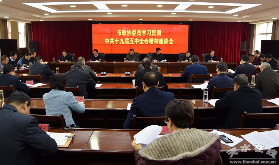12月15日,天水市政协组织召开市政协委员学习贯彻中共十九届五中全会精神座谈会。传达学习中共十九届五中全会精神,学习国家发改委《更好发挥国家发展规划战略导向作用推进“十四五”时期经济社会高质量发展》,并进行座谈交流发言。