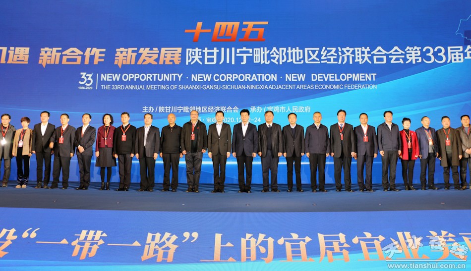 12月23日,陕甘川宁毗邻地区经济联合会第33届年会在宝鸡市召开。大会邀请陕西省发改委、商务厅、文化和旅游厅,晋陕豫黄河金三角区域合作试验区及15个经联会成员方领导和代表200多人参会。陕西省副省长、宝鸡市委书记徐启方参加会议并致辞。天水市委常委、常务副市长赵四辈,副市长汪小娟出席会议。