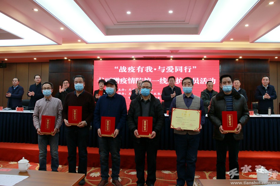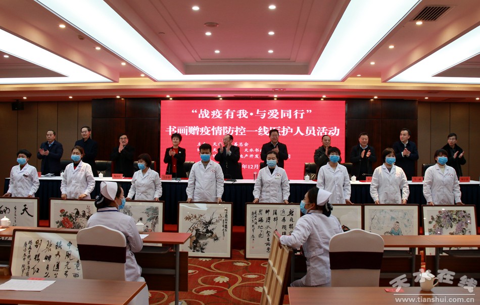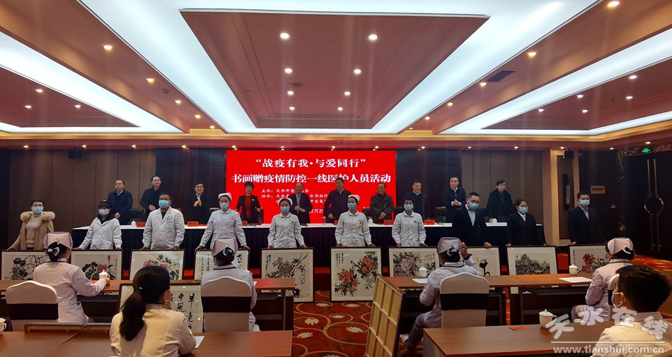 12月29日,由天水市慈善总会主办,天水市美术馆、天水书画院、甘肃天麟房地产开发集团有限公司协办的“战疫有我·与爱同行”书画赠疫情防控一线医护人员公益活动赠在天水宾馆举行。