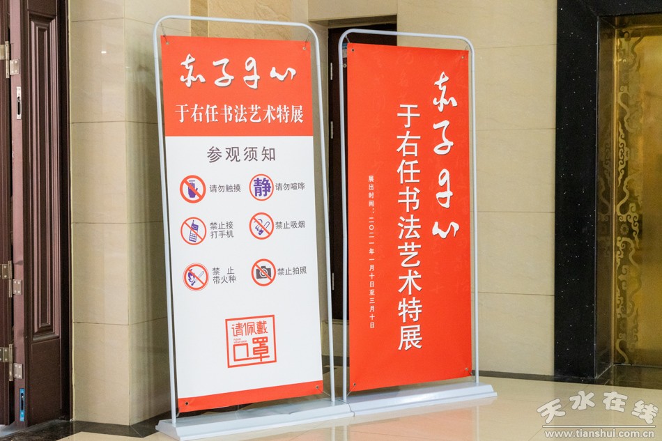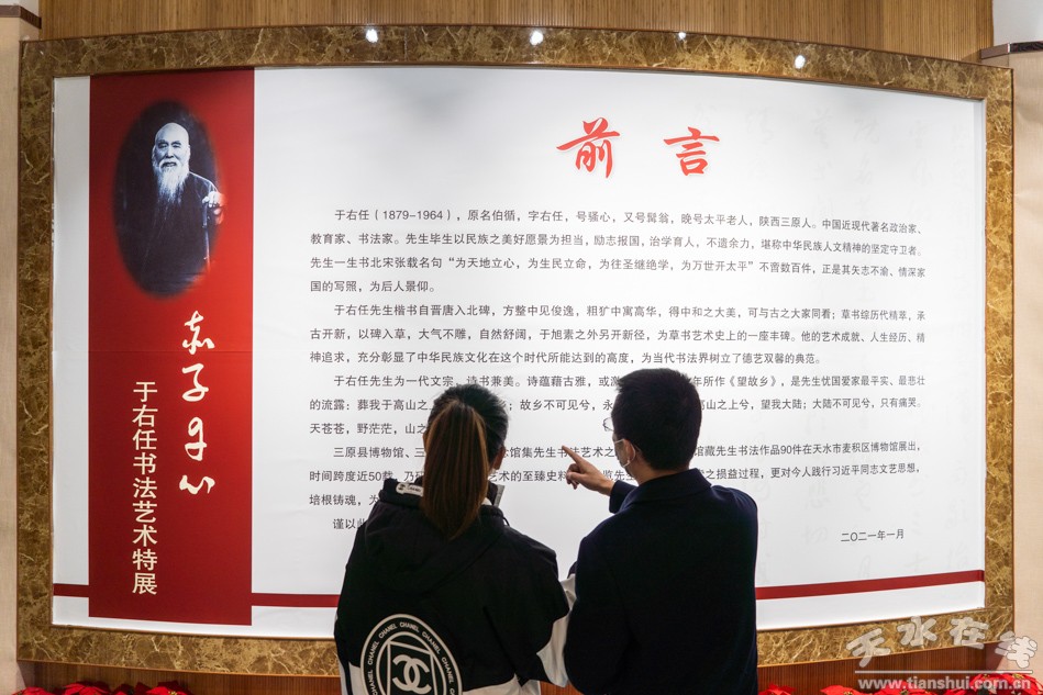 本次展览由中共天水市麦积区委、天水市麦积区人民政府、中共三原县委、三原县人民政府主办,天水市麦积区文体广电和旅游局、三原县文化和旅游局、三原县博物馆、三原县于右任纪念馆、天水市麦积区博物馆承办,共展出于右任先生优秀书法作品90幅。