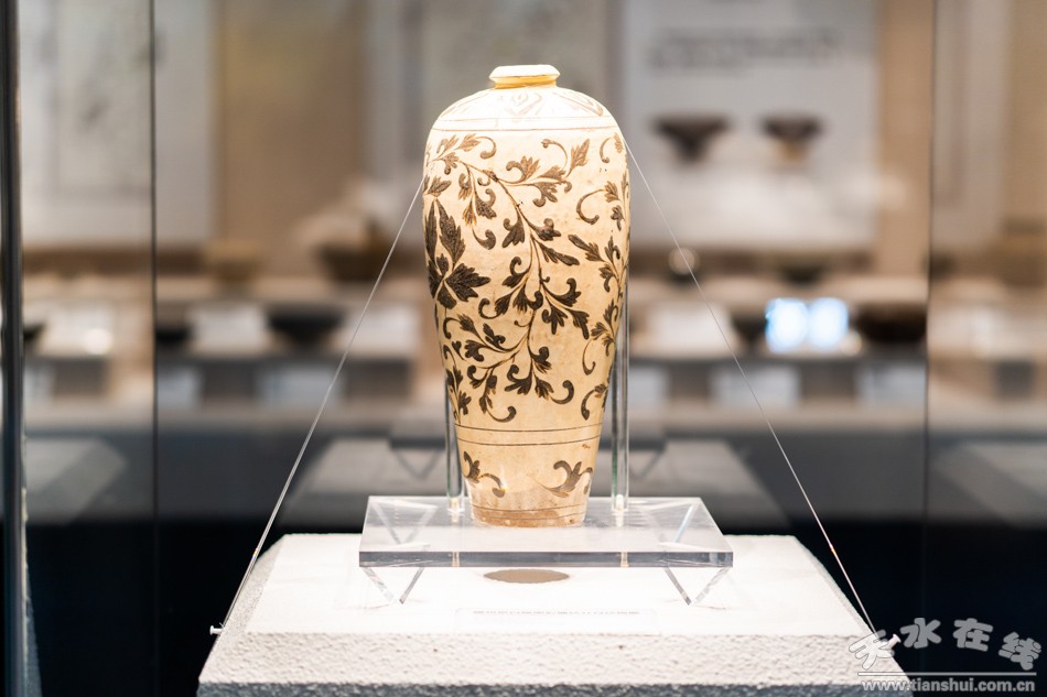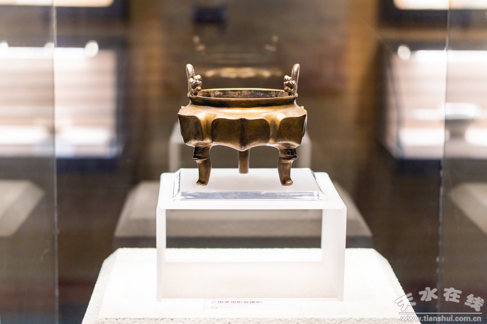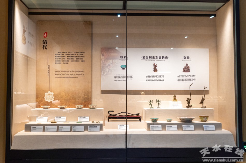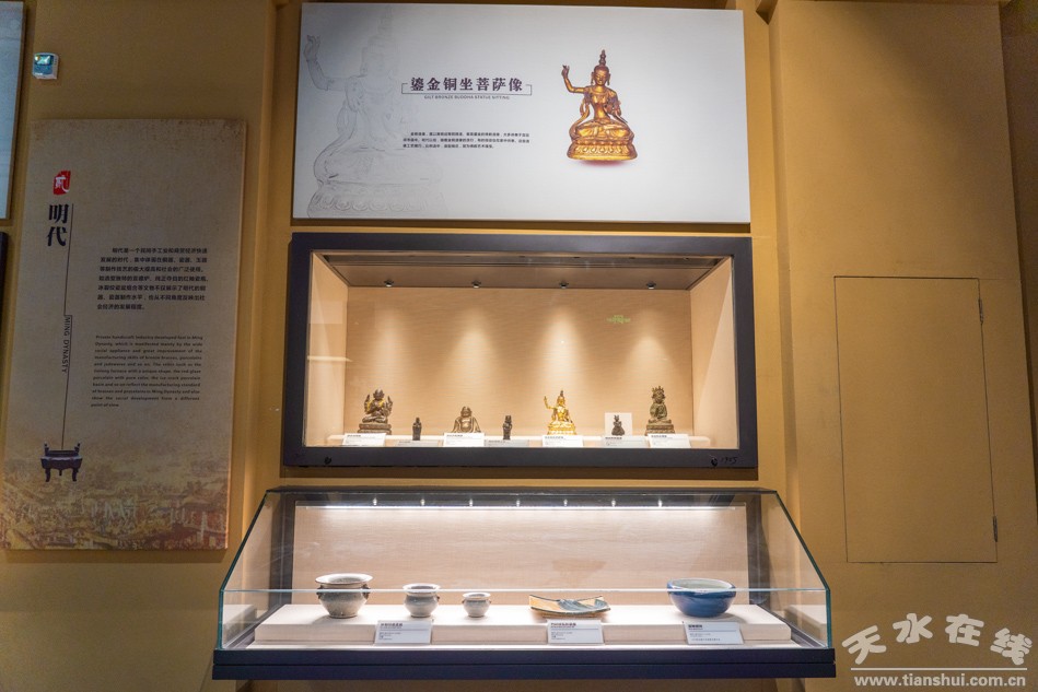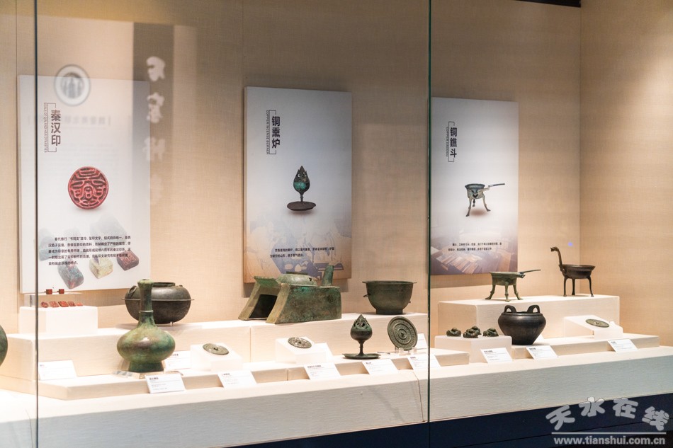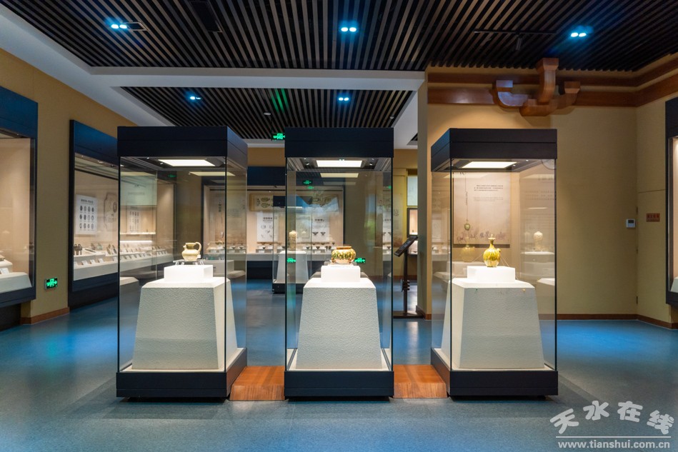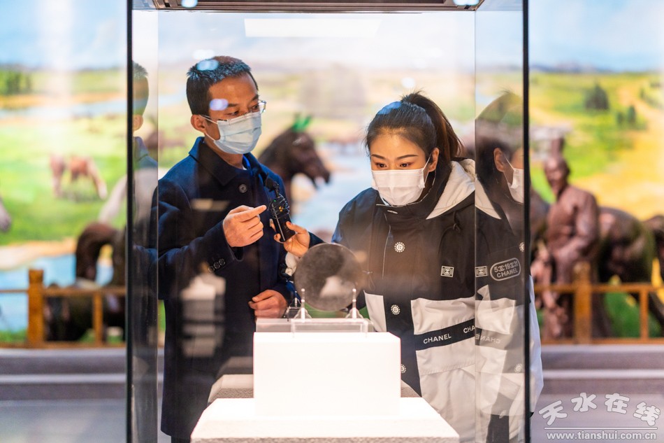 (麦积区博物馆馆长黄伟民向天水在线主播萌萌介绍馆藏)