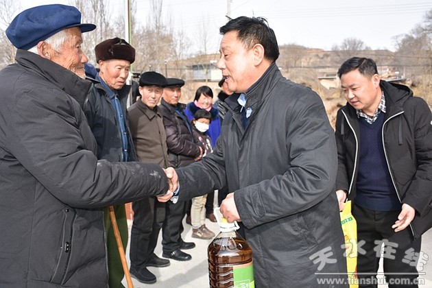 1月27日,天水市总工会党组书记、常务副主席庞明全,市总工会党组成员、副主席张景荣,市总工会一级调研员王建军带领市总工会部分工作人员到对口帮扶的甘谷县礼辛镇河沟村和石砚村开展“暖冬行动”慰问活动。甘谷县总工会主席马树平陪同参加。