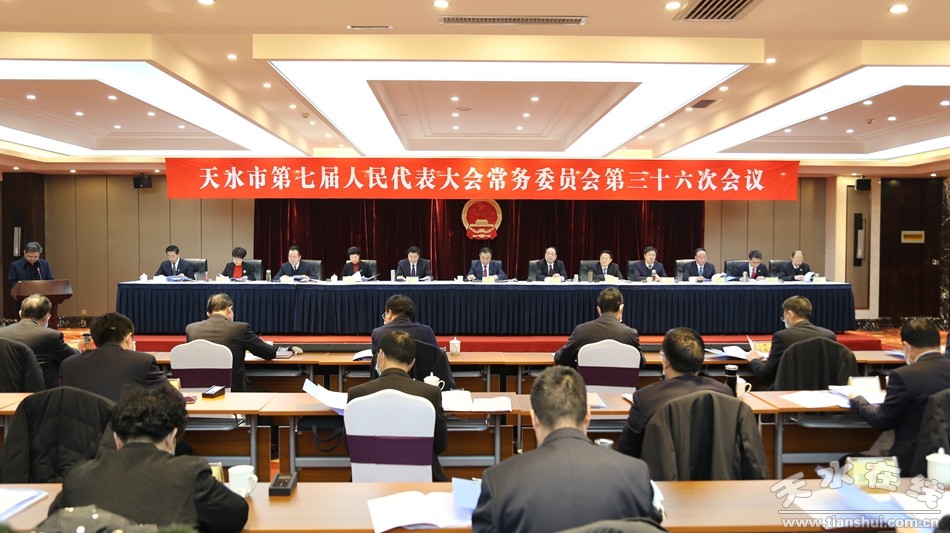 1月29日,天水市七届人大常委会第三十六次会议召开。市人大常委会主任蒋晓强,市人大常委会副主任安志宏分别主持第一、二次全体会议。出席会议的常委会组成人员符合法定人数。