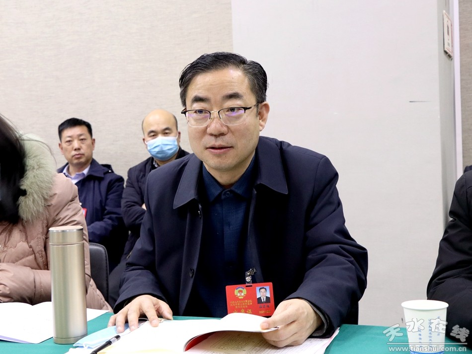 (2月1日,政协天水市七届五次会议第五小组审议市政协常委会工作报告和提案工作报告。)