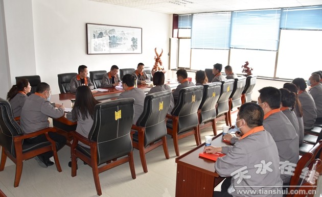 会上,传达了市政府国资委党委 市企业工委《关于2020年度天水市国有企业党组织书记抓基层党建工作述职评议考核大会参会情况的通报》文件精神,要求大家要严肃党内政治生活,教育引导党员干部讲政治、有信念,讲规矩、有纪律,讲道德、有品行,讲奉献、有作为,在公司各领域走前头、作表率。