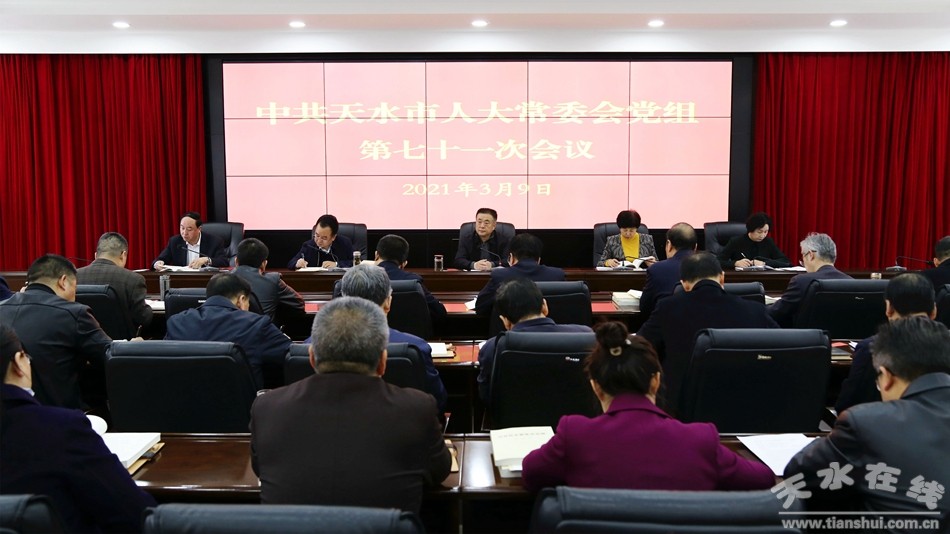 3月9日,天水市人大常委会党组书记蒋晓强主持召开市七届人大常委会党组第七十一次会议。市人大常委会党组副书记王晓琴,党组成员杨永晖、杨坤出席会议,市人大常委会副主任李焕珍列席会议。