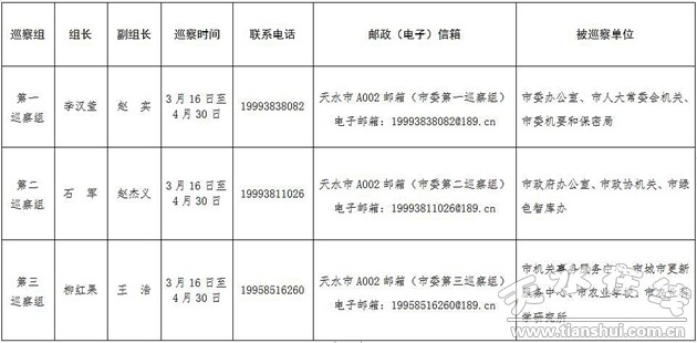 根据市委对巡察工作的统一部署,七届天水市委统筹联动巡察工作已全面展开,本轮分别对市委办公室、市人大常委会机关、市政府办公室、市政协机关、市委机要和保密局、市绿色智库办、市机关事务服务中心、市城市更新服务中心、市农业学校、市农业科学研究所等10家单位党组织开展常规巡察。截止3月16日,市委3个巡察组已全面进驻被巡察单位开展工作。