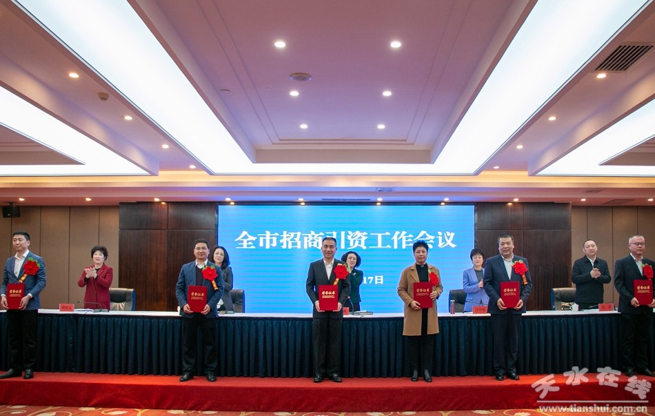 会议总结了“十三五”时期和2020年全市招商引资工作,安排部署了“十四五”时期及2021年重点工作任务,分解下达了2021年招商引资目标任务计划,表彰奖励了全市招商引资先进县区、先进单位、重点产业项目单位和先进个人,市招商局与陕西省甘肃商会签订了设立天水市招商引资工作站合作协议。